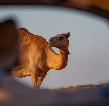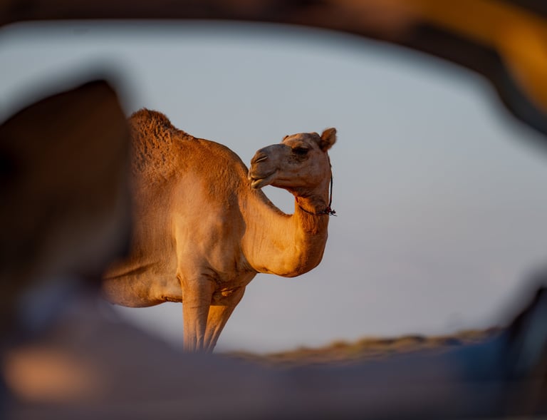 Relax and watch the camels stroll by, far away from the busy city life. The sunsets here are truly stunning, filling the sky with beautiful colors.