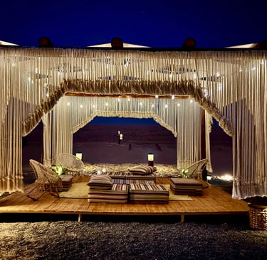 Our camp offers an intimate, family-like atmosphere where every guest feels at home. Surrounded by quiet dunes, you can enjoy the silence and the beauty of the desert.